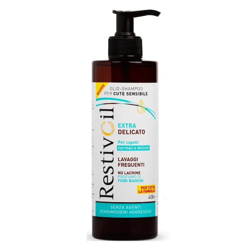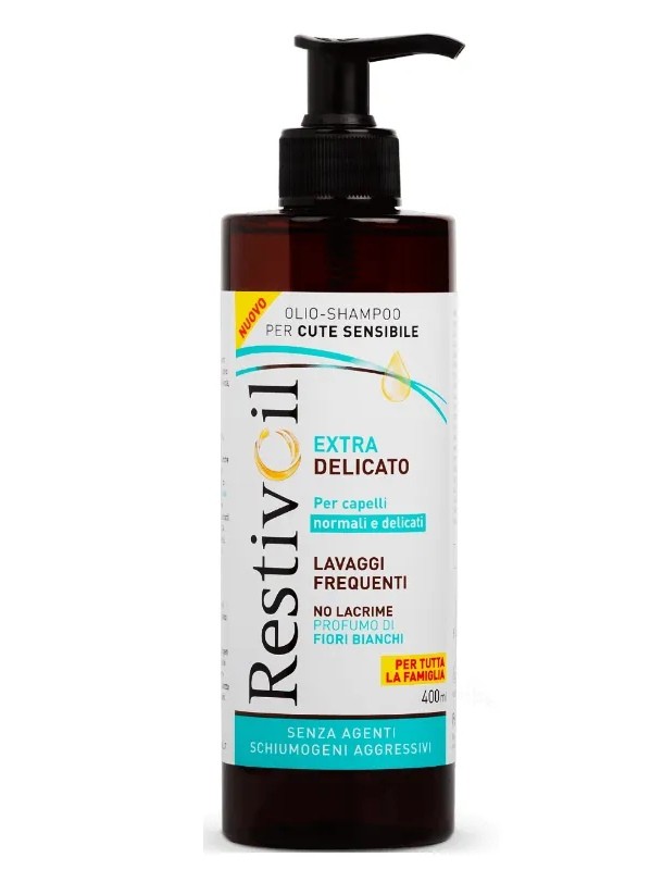 RestivOil Extra Delicato è adatto alla detersione dei capelli, da normali a delicati, di tutta la famiglia. Inoltre, grazie alla sua formula no-lacrime, oftalmologicamente testata, può essere usato anche per i bambini dai 3 anni in su.