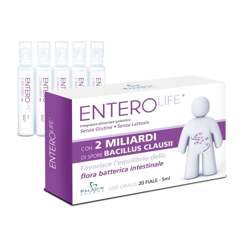 Enterolife 2 miliardi 20 fialoidi è un integratore alimentare probiotico con 2 miliardi di spore bacillus clausii. Favorisce l’equilibrio della flora batterica intestinale.