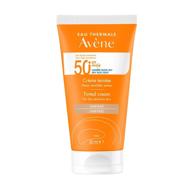 Avene Crema solare viso colorata SPF50+ 50ml è una crema colorata SPF 50+ viso e collo, indicata per pelli secche e sensibili soggette a scottature, offre una protezione solare motlo alta (UVA-UVB, luce blu visibile ad alta energia) e una sensazione di comfort immediato.