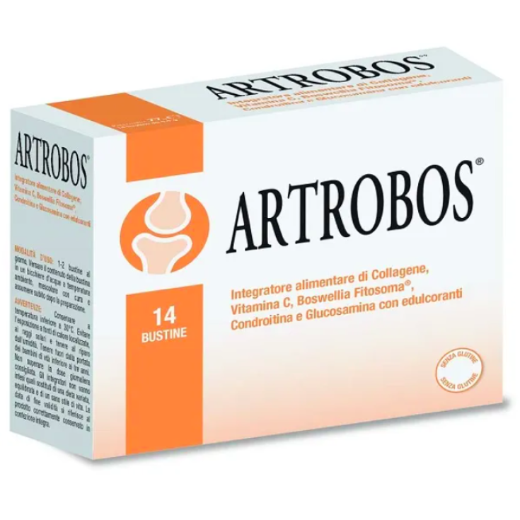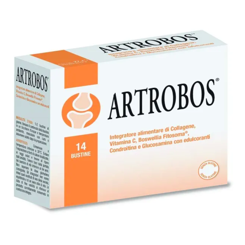 Artrobos 14 Bustine è un integratore alimentare di Collagene, Vitamina C, Boswellia fitosoma, Condroitina e Glucosamina utile per mantenere il normale benessere articolare.