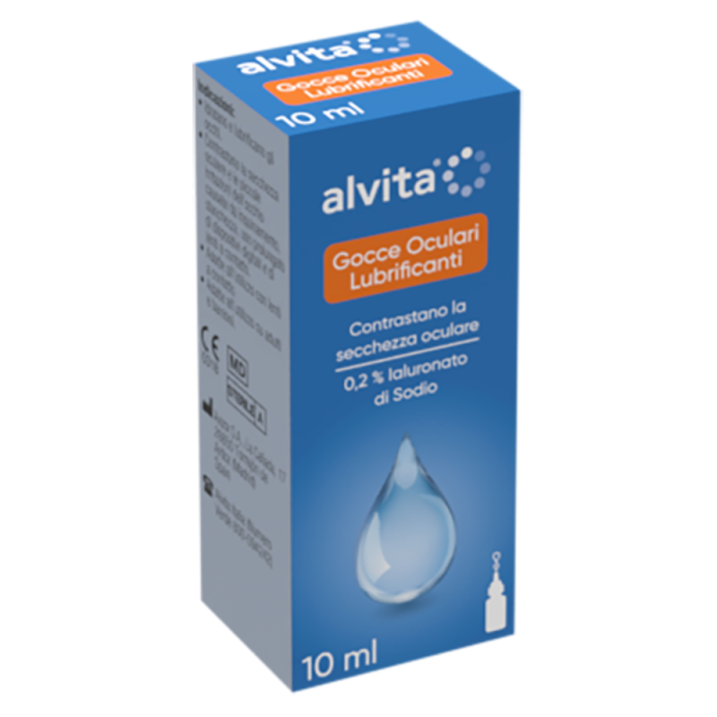 Gocce oculari lubrificanti, contengono ialuronato di sodio, un polimero naturale,presente anche nella struttura dell'occhio umano. Le caratteristiche fisiche delloialuronato di sodio conferiscono alle Gocce Oculari Lubrificanti Alvita le sueproprietà "viscoelastiche" umettanti e idratanti, fornendo il massimo comfort e unsollievo duraturo.