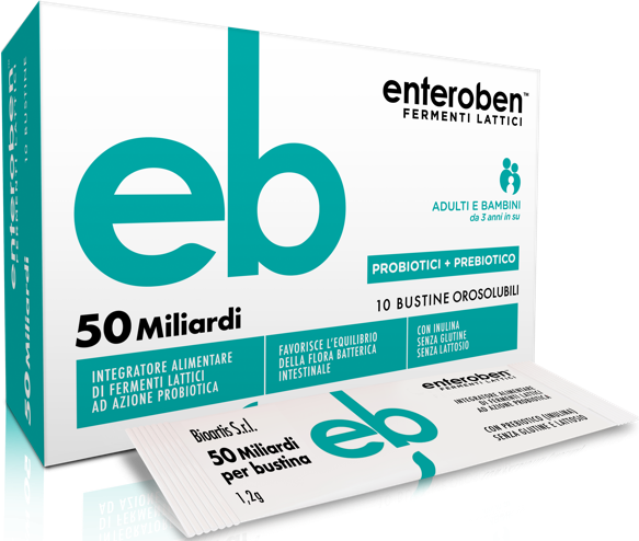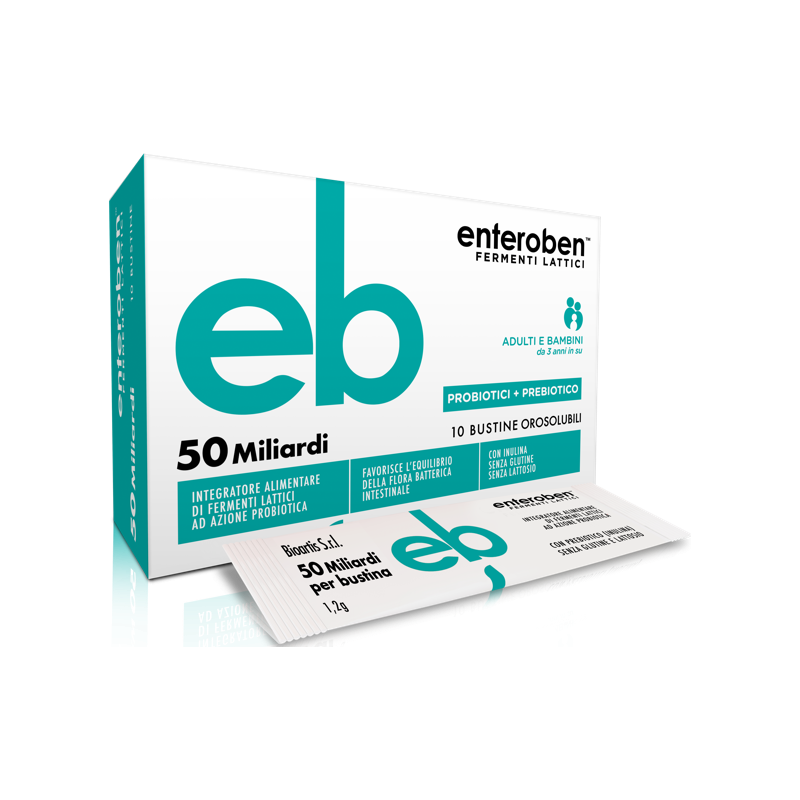 Enteroben™ 50 Miliardi è un integratore alimentare per adulti e bambini che contiene 50 miliardi di fermenti lattici ad azione probiotica utili per favorire l'equilibrio della flora batterica intestinale.