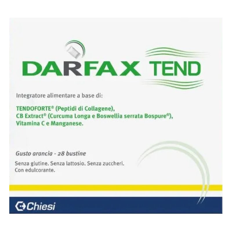 Integratore alimentare a base di TENDOFORTE (peptidi di collagene), CB Extract (Curcuma longa e Boswellia serrata Bospure), vitamina C e manganese.
