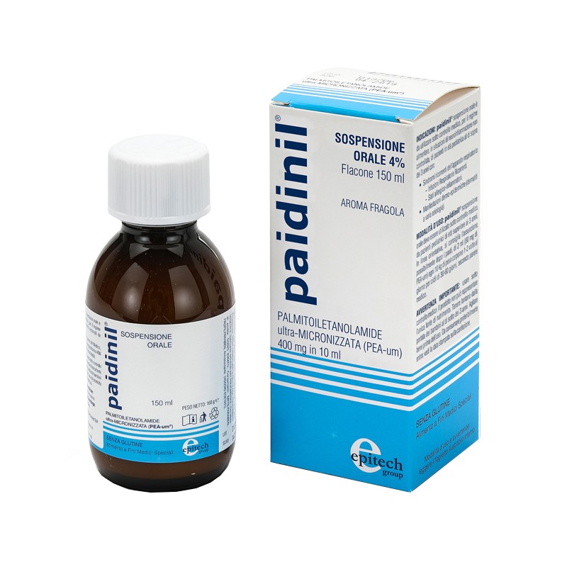 Sospensione orale da utilizzare sotto controllo medico, per il regime alimentare, in situazione di neuroinfiammazione non controllata, di pazienti in età pediatrica al di sopra dei 3 anni con sindormi ricorrenti dell'apparato respiratorio e disturbi del neuro sviluppo (disturbi dello spettro autistico, profilassi dell'emicrania, dolore di varia eziologia).