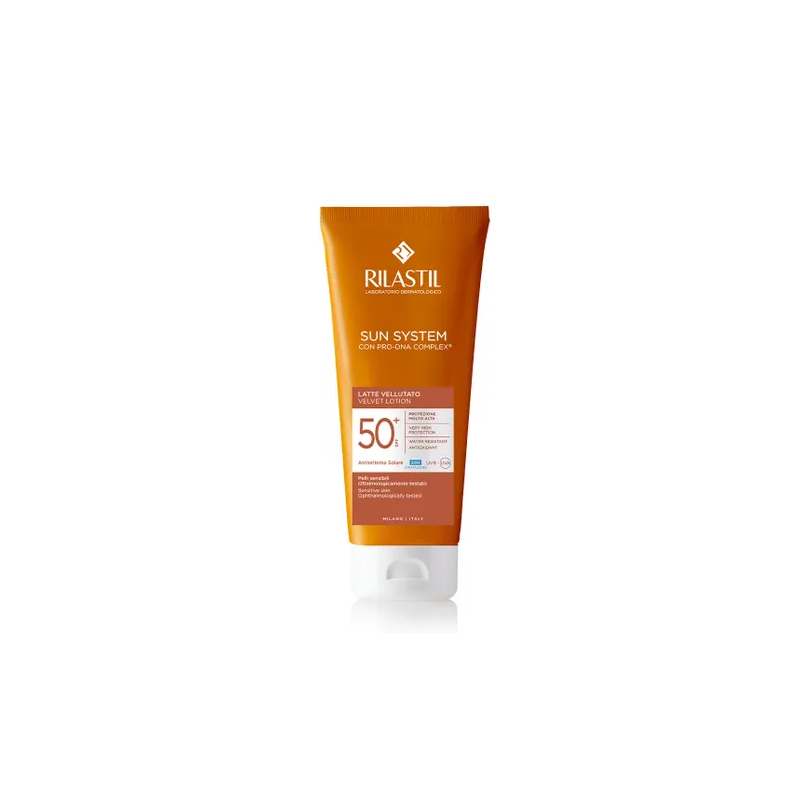 Rilastil Sun System Spf50+ è un latte solare ad altissimo fattore di protezione dalla texture vellutata e di facile stesura. La sua formula è arricchita con: