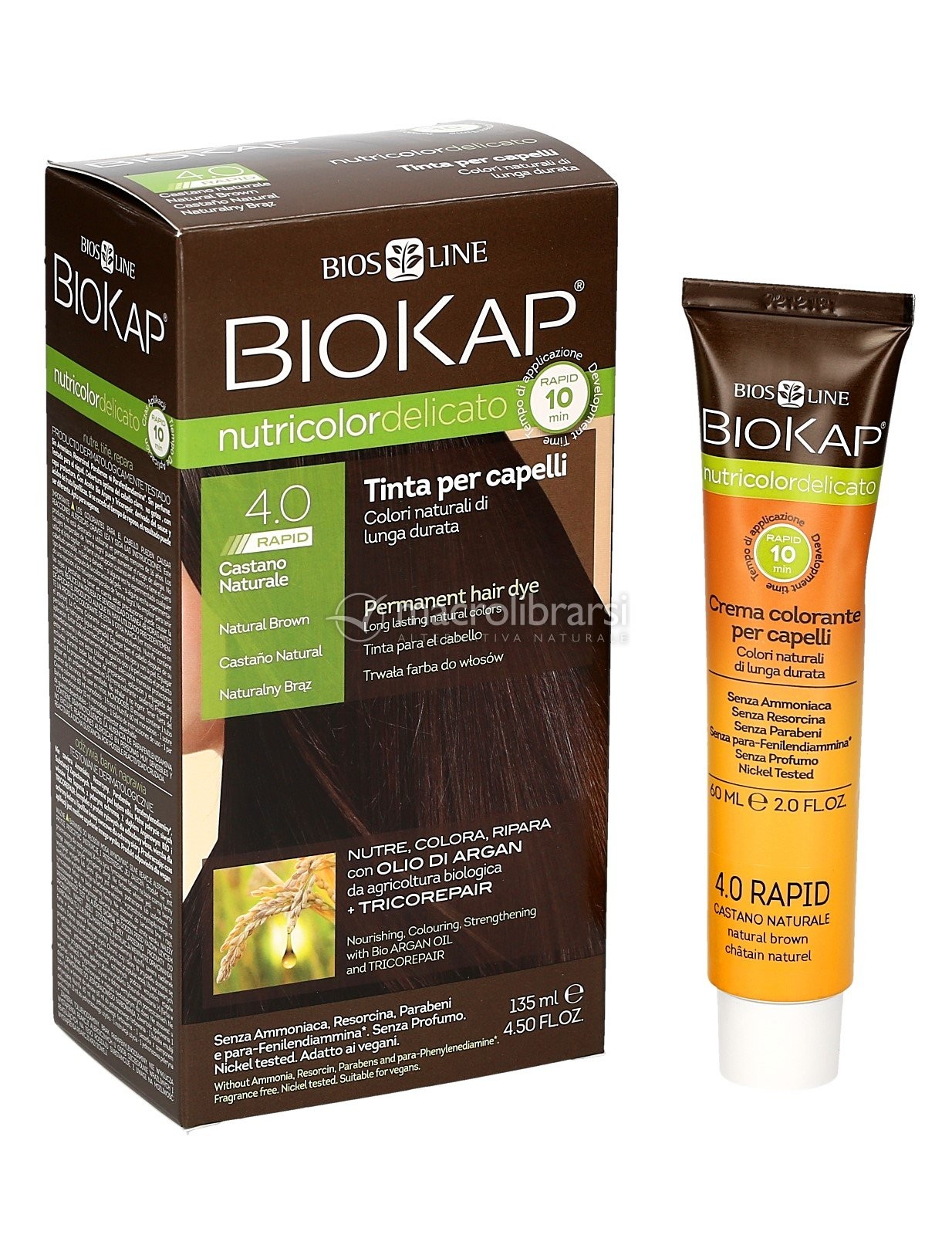 BIOKAP TINTA 4 0 CASTANO NATURALE RAPID 10 MINUTI SENZA AMMONIACA, PARA - FENILENDIAMMINA, RESORCINA, PARABENI, NICKEL TES