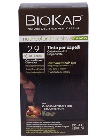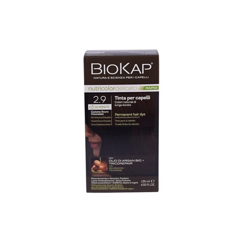 BIOKAP TINTA 2 9 CASTANO SCURO CIOCCOLATO RAPID 10 MINUTI SENZA AMMONIACA, PARA - FENILENDIAMMINA, RESORCINA, PARABENI, NI