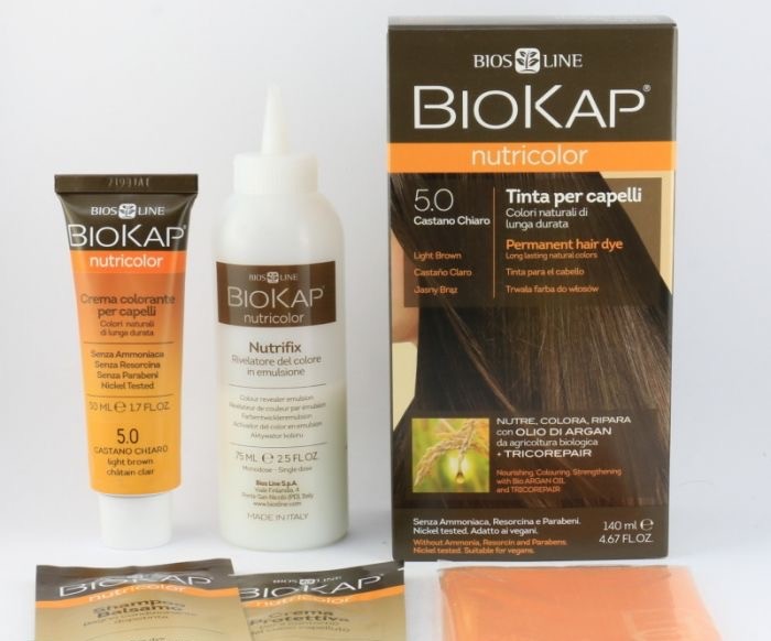 BIOKAP TINTA 5 0 CASTANO CHIARO SENZA AMMONIACA CON OLIO D'ARGAN BIOLOGICO