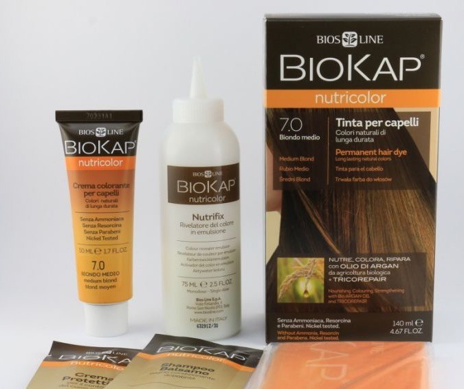 BIOKAP TINTA 7 0 BIONDO MEDIO SENZA AMMONIACA CON OLIO D'ARGAN BIOLOGICO