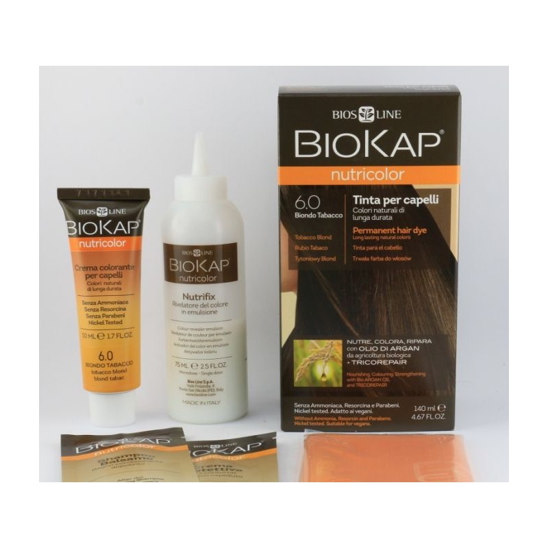 BIOKAP TINTA 6 0 BIONDO TABACCO SENZA AMMONIACA CON OLIO D'ARGAN BIOLOGICO