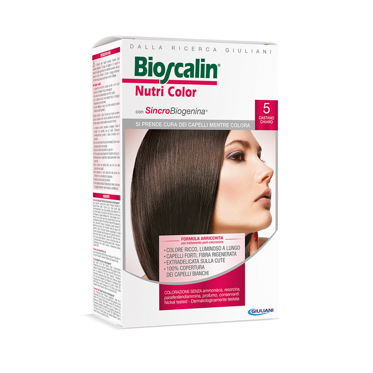 BIOSCALIN TINTA 5 CASTANO CHIARO EXTRA DELICATA 100% COPERTURA CAPELLI BIANCHI SENZA AMMONIACA, PARA-FENILENDIAMMINA, RES