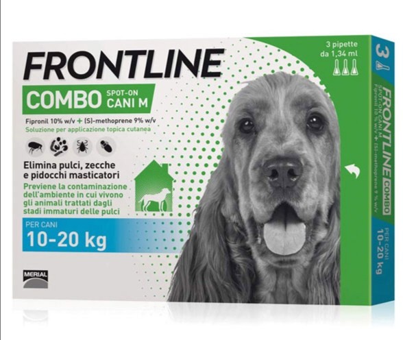 FRONTLINE SPOT-ON COMBO PER CANI 10-20 KG TAGLIA M ELIMINA PULCI, ZECCHE E PIDOCCHI MASTICATORI PREVIENE LA CONTAMINAZION
