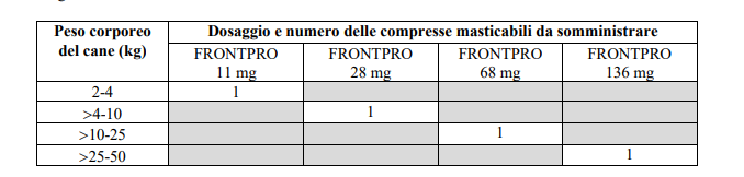 Frontline Frontpro è indicato per i cani di piccola taglia, con peso compreso tra 25-50g.